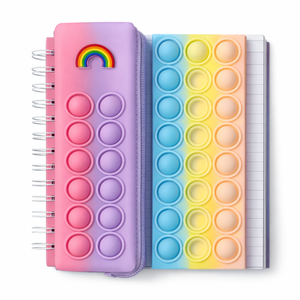 Pop-it trendini kırtasiye dünyasıyla buluşturan Spiralli Pop-It Defter, çocukların ve gençlerin favorisi olmaya aday. Ön yüzünde yer alan silikon pop-it kalemlik, stres azaltıcı yapısıyla eğlenceli bir kullanım sunarken fermuarlı yapısı sayesinde kalem, silgi ve küçük kırtasiye ürünleri güvenle saklanabilir.