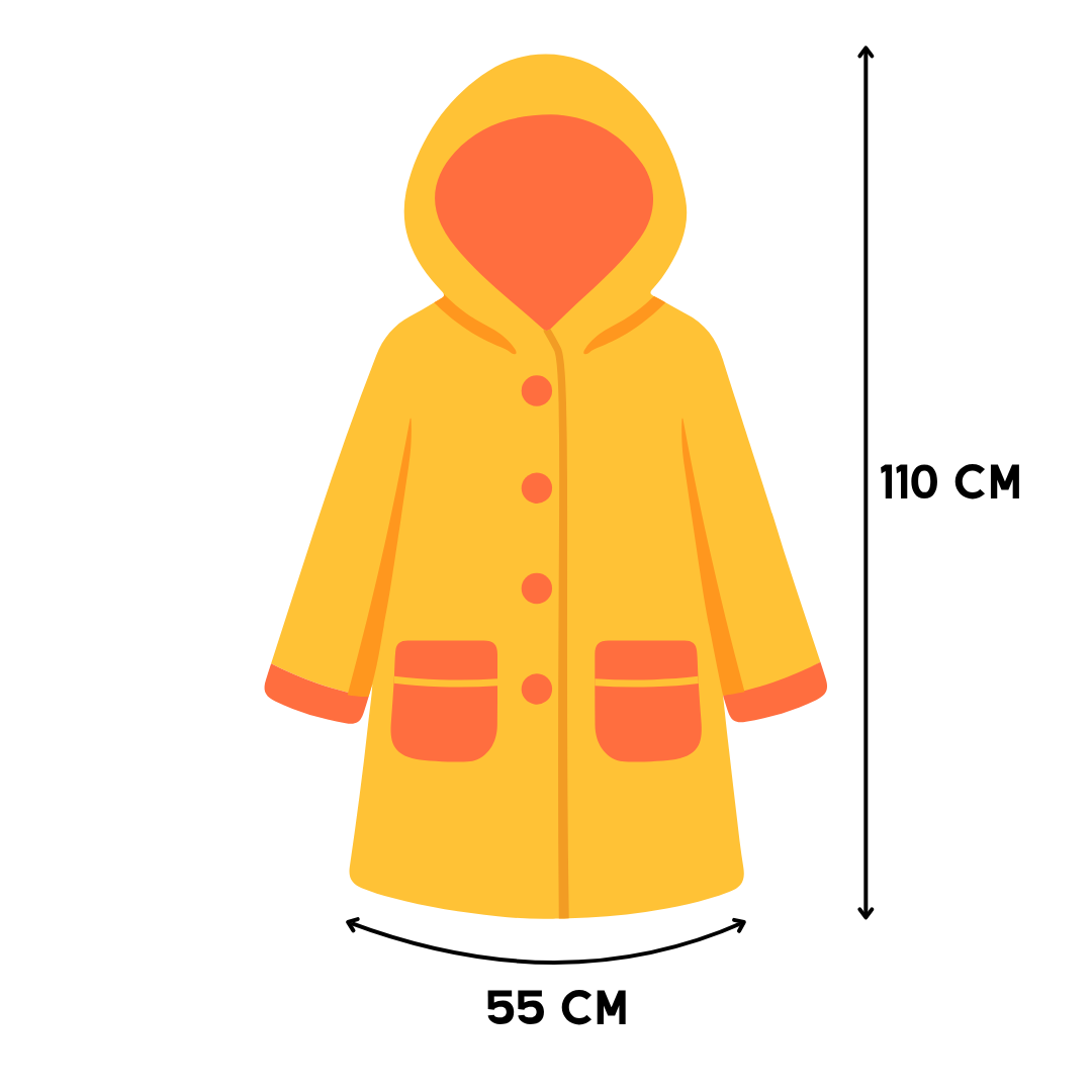 - Çocuk yağmurluk ölçüleri kol uzunluğu 55 cm, genişlik 55cm, boy 110 cm (kapüşon dahil)