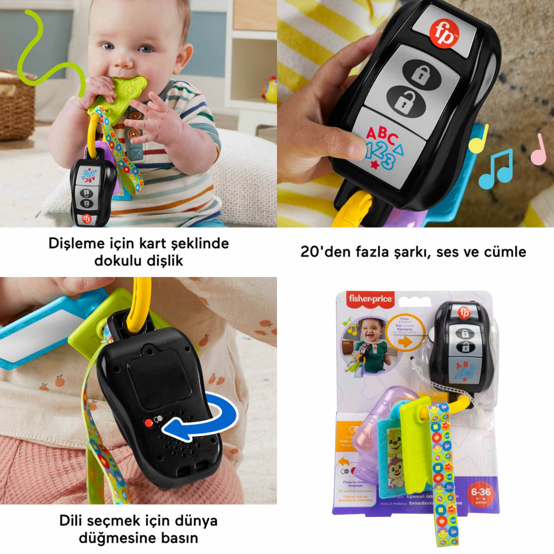 Fisher Price Sesli Eğlen ve Öğren Eğlenceli Aktivite Anahtarı, 6 ila 36 ay arası bebekler için tasarlanmış interaktif bir oyuncaktır. Bu seyahat temalı oyuncak, çocukların gelişimini destekleyen çeşitli özelliklere sahiptir: 20'den fazla şarkı, ses ve ifade: Bebeklerin sayılar, renkler ve şekiller gibi temel kavramları öğrenmesine yardımcı olur. 4 farklı aksesuar: Müzikli araba anahtarlığı, yumuşak dezenfektan şişesi, arkası fotoğraflı çerçeveli ayna ve kart şeklinde dişlik ile duyusal gelişimi destekler. Kumaş tutma ipi: Minik eller için uygun boyutta olan bu oyuncak, bebeklerin kolayca kavrayıp oynamasını sağlar. Gelişimsel faydalar: İnce motor becerilerini geliştirir, el-göz koordinasyonunu destekler ve duyusal keşfi teşvik eder. Çok dilli destek: Türkçe, İngilizce ve Yunanca dillerinde içeriklerle dil gelişimini teşvik eder. Bu oyuncak, çocukların konsantrasyon, el-göz koordinasyonu ve hayal gücü gibi becerilerini geliştirirken, eğlenceli sesler ve ışıklarla onları meşgul eder.