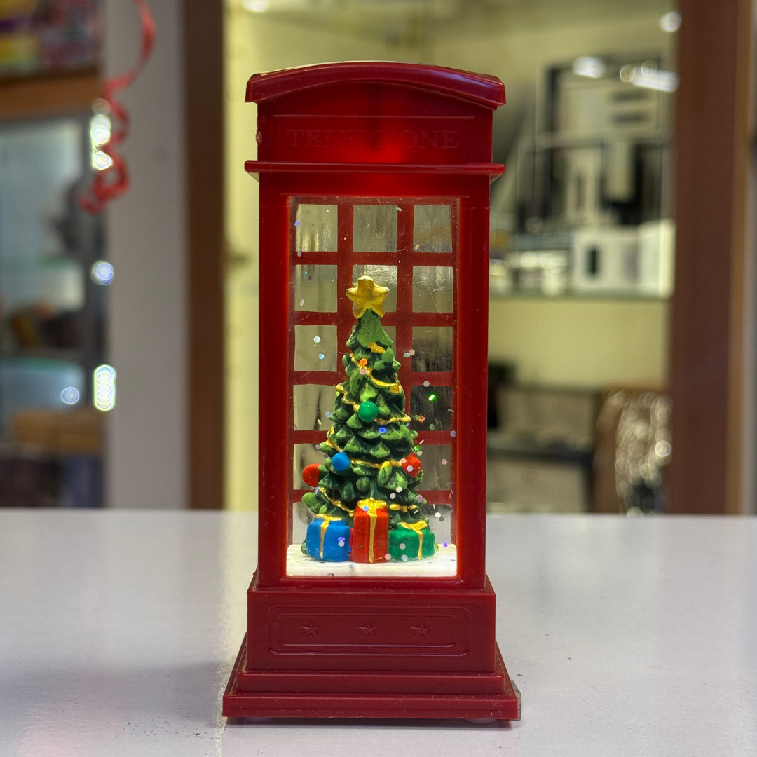 Klasik İngiliz telefon kulübesi tasarımının yılbaşı ruhuyla birleştiği bu özel dekor; içindeki ışıklı mini çam ağacı, hareketli kar tanesi efekti ve detaylı hediye tasarımlarıyla bulunduğu her ortamda dikkat çeken büyüleyici bir görüntü oluşturur.