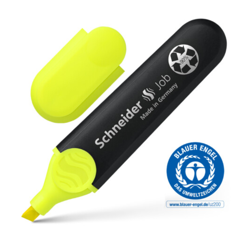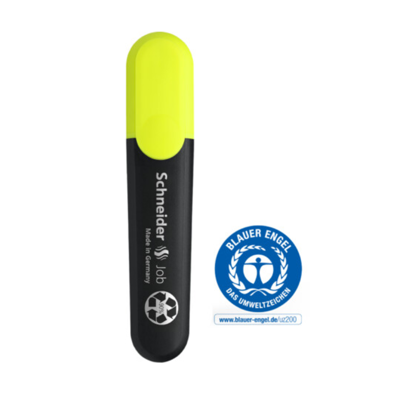 1+5 mm olmak üzere iki çizgi kalınlığı olan kama uçlu işaretleme kalemi. Renk: Sarı. Job fosforlu kalem, dünyanın en ünlü eko-sertifikası "Blue Angel" sahiptir ve kalemin %90'dan fazlası geri dönüşüm plastikten üretilmiştir. Kalemin gövdesi, mürekkep haznesi ve ucu geri dönüşüm malzemeden üretilmiş Job fosforlu kalemin mürekkebi de bio-bazlı mazlemeden üretilmiştir. Standart, kopya ve fax kağıdı üzerinde kullanılabilen mürekkebi, canlı renklerinin yanı sıra, gün ışığına karşı dirençlidir. Bu da Job forsforlu kalemin hem okulda, hem üniversitede hem de ofiste kullanım için ideal bir ürün olmasını sağlar. Kesik ucu ile Bullet Journal, kliagrafi ve el yazımı için de kullanımını sağlar. Maxx 660 dolum istasyonu ile yeniden doldurulabilir. Geniş mürekkep haznesi sayensinde Job fosforlu kalem 15.000' den fazla kalemi işaretleyebilir.