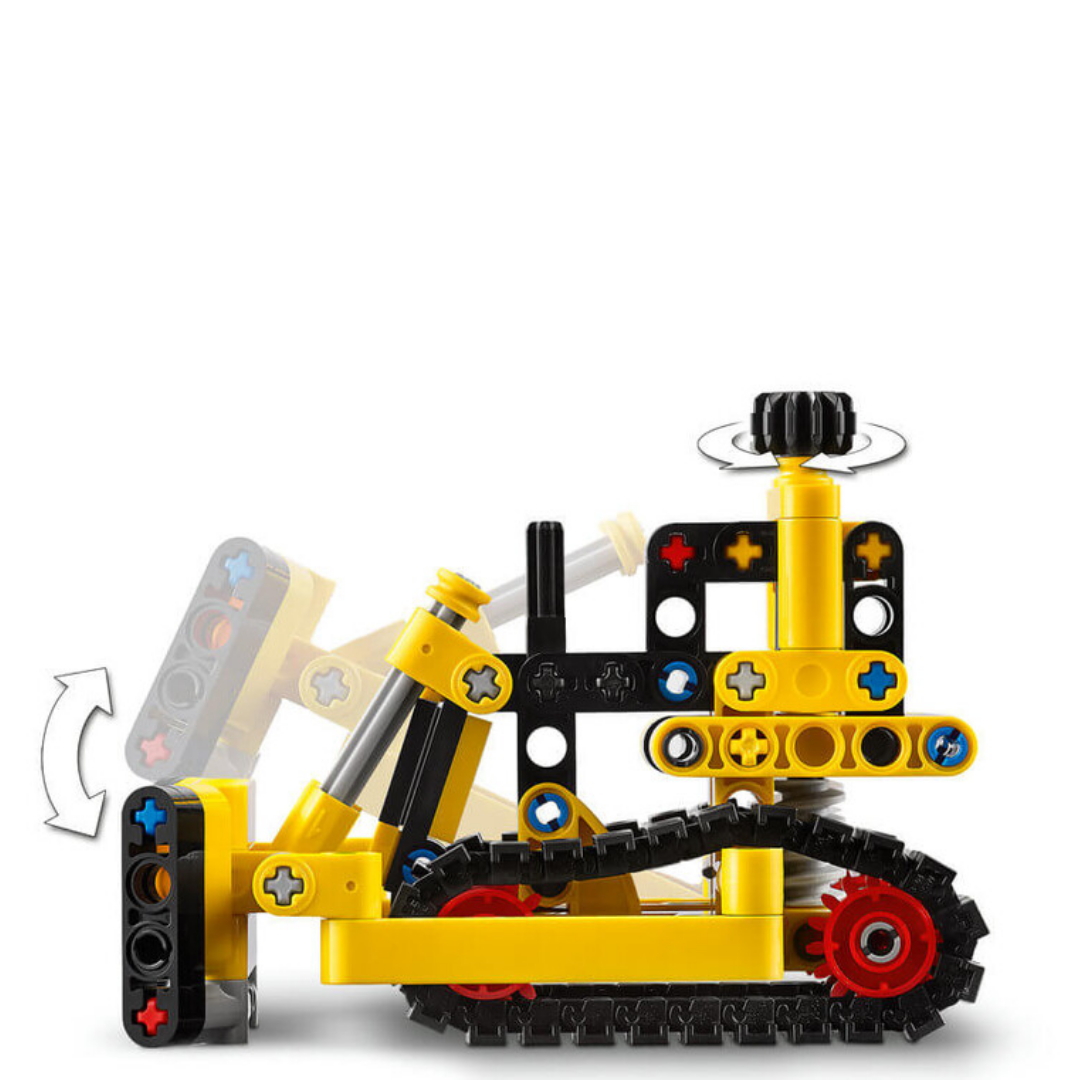 Bu 195 parçalı yapım setiyle, çocuklar (7 yaş ve üzeri) hayallerindeki iş makinelerini kendi elleriyle inşa edebilirler. Gerçek buldozerlerden esinlenen sarı-siyah renk şeması, hareketli paletler ve üzerinde yer alan kontrol elemanı sayesinde, dozer bıçağını yukarı-aşağı hareket ettirme keyfi sunar.